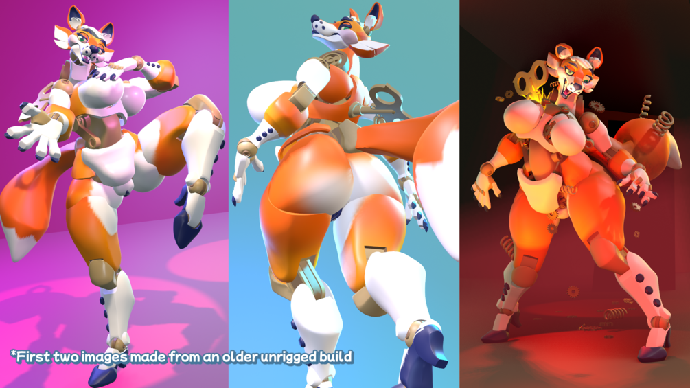 Tappet, the clockwork fox! A 3D character model that you can fool around with. Warning - the current Blender model is very high poly! I still consider myself a novice when it comes to 3D software, and this project has been my method of figuring things out. The goal in the end is to have the character under 40k poly with an outfit under 20k poly. The smaller the better.
