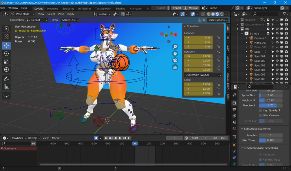 Do not use this model in any commercial works. Anything else is fine, but I kindly ask that you credit me when appropriate. The only exceptions are the custom bone shapes which can be freely used even in commercial works. As stated earlier, Tappet is still a WIP and I don't recommend using her in her current form for any projects you may be working on.